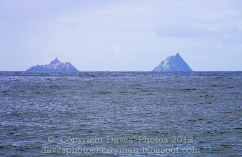 | Our first view of the Skelligs, Little Skellig on the left, Skellig Michael on the right! |